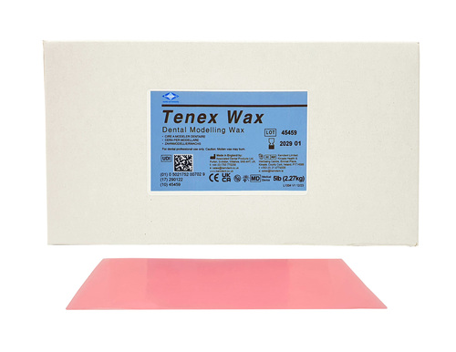 Kemdent Tenex Wax är ett verkligt överlägset vax som har de finaste bearbetningsegenskaperna. Det är tåligt men arken är tunnare än vanligt modelleringsvax för basplattor. Formbart vid lägre temperaturer, medelstarkt. Kan användas för bettregistrering. Ljusrosa till färgen.