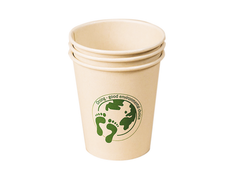 Beige engångsbägare av miljövänlig bambufiber med insidan belagd med PE, 21 cl.