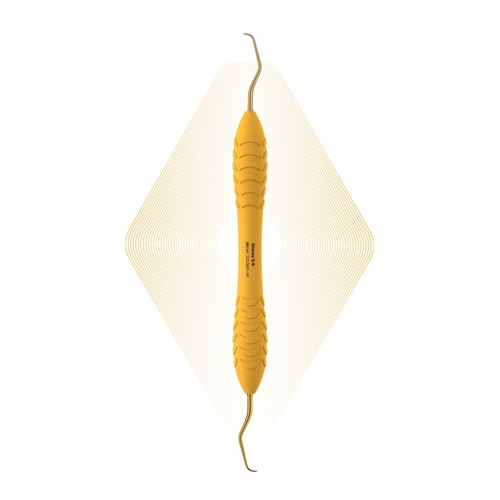 Dubbeländad finisheringscurette med guldfärgade arbetsdelar av högkvalitativt 440C rostfritt stål som genomgår en avancerad kryogen värmebehandling för ökad hårdhet och bibehållen skärpa. Denna teknik säkerställer upp till 3 gånger längre skärpa jämfört med ett standardinstrument. Inget behov av omslipning.