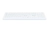 Detta fullstora tangentbord har samma bredd som ett standardtangentbord. Det har en separat sektion för piltangenterna. Tangentbordet har en slät silikonyta som är lätt att rengöra samt en fast upphöjning i bakkant som ger en 6-gradig lutning och en ergonomisk skrivställning. Mekaniska knappar under silikonytan ger en bra skrivkänsla.