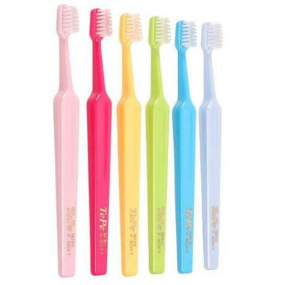 TePe Mini är en barntandborste i flera färger. Den har ett mindre borsthuvud och kortare borst med extra mjuka strån, för att passa en liten mun som precis fått sin första tand. Skaftet är bekvämt att hålla i både för barn och vuxna. TePe Mini rekommenderas till barn från 0-6 år.