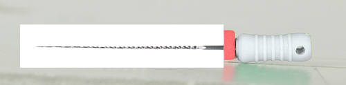 Steril K-fil av rostfritt stål med filstopp och färgkodat plastskaft.